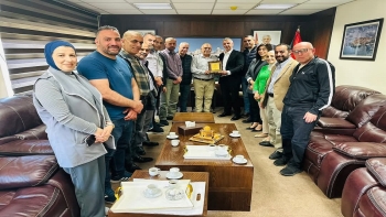 • أبو الحمص يستقبل وزير العدل السابق محمد شلالدة وطلبة دكتوراة >