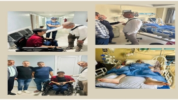 • رئيس هيئة شؤون الأسرى والمحررين رائد أبو الحمص ووفد من الهيئة وأسرى محررين، خلال زيارتهم مساء اليوم الثلاثاء للأسرى المرضى الذين يتواجدون في مستشفى فلسطين في العاصمة المصرية القاهرة >