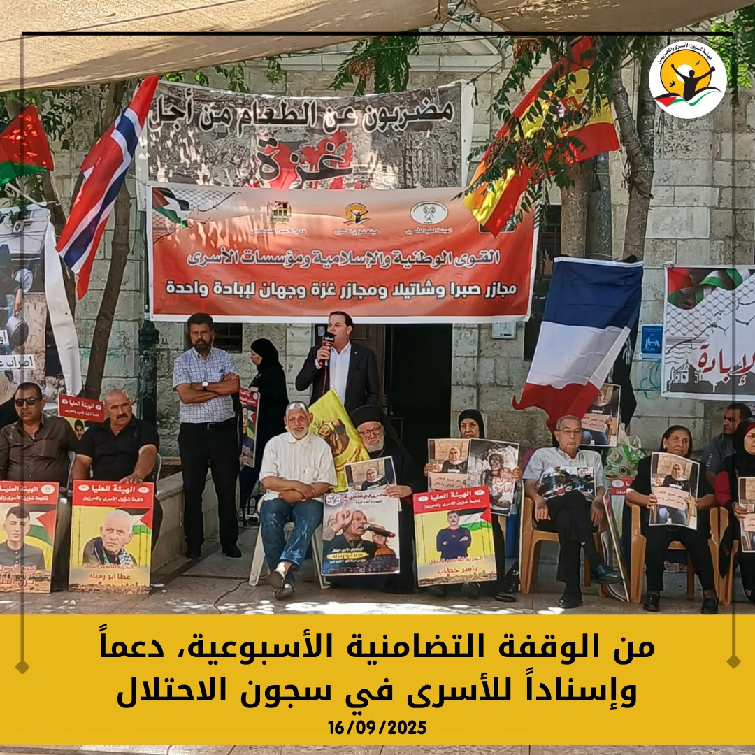 صور | من الوقفة التضامنية الأسبوعية دعمًا للأسرى، وإحياءً لذكرى مجزرة صبرا وشاتيلا، وتنديدًا بالمجازر الإسرائيلية.