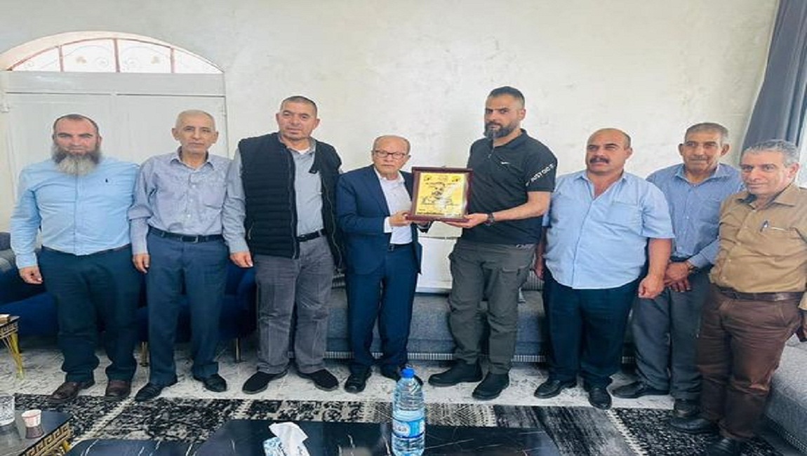 رئيس هيئة شؤون الأسرى والمحررين اللواء قدري أبو بكر ووفد من الهيئة ضم الوكيل المساعد نائل خليل ومديري مديريتين شمال الخليل والخليل منقذ أبو عطوان وابراهيم نجاجرة ومن العلاقات العامة والاعلام مجد القدومي في زيارة وتهنئة الأسير اسامه عبد الله السلال من بلدة