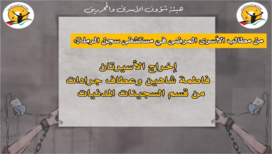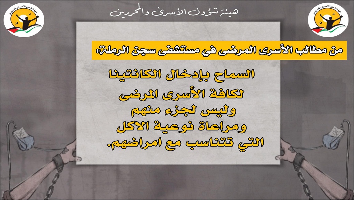 - ملف الإهمال الطبى غاية في الخطورة، فلا يخفى على أحد أحوال أسرانا المصابين بأمراض تقدمية، كما أن مصانع الأدوية الإسرائيلية تجعل من الأسرى حقلًا لتجاربها، كما أقر الاحتلال بعدم معالجة أي أسير إلا على نفقته الخاصة، ما يعد حكمًا بالإعدام على مصابى السرطان نظرًا لبهاظة ثمنها، إضافة لعدم الإفراج المبكر عن المرضى، والأدهى من ذلك أن الأسرى بات لديهم قناعة بأن الأدوية التي يدخلها الاحتلال للأسرى تضاعف أمراضهم، إذ أبلغ العديد منهم بإعطائهم أدوية مغلوطة.