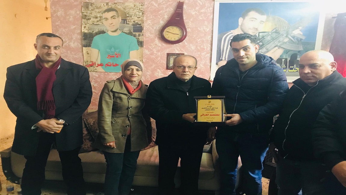 كرم رئيس هيئة شؤون الأسرى والمحررين اللواء قدري أبو بكر، الأسير المحرر حسين أبو حاشية من مخيم بلاطة والذي أمضى أكثر من 15 عاماً في الأسر، وذلك خلال الحفل الذي نظمه مركز يافا الثقافي في المخيم على شرفه بمناسبة مرور خمسين عاماً على عملية ومعركة واد القلط،