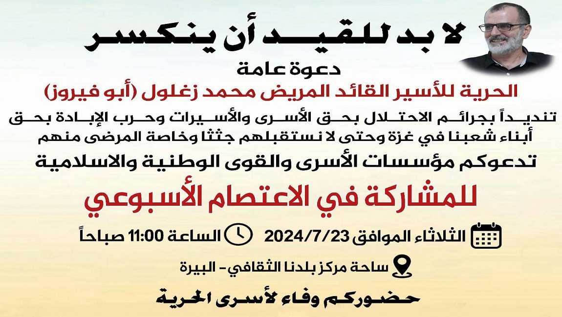 وحتّى وقف الإبادة المستمرة بحقّ شعبنا، وحرّيّة أسرانا، وحتى حرّيّة فلسطين، فإننا نتوجه مجدداً لأبناء شعبنا ولكل الأحرار في العالم وكواجب وطنيّ وأخلاقيّ بنداء للخروج للميادين تحت عنوان الانتصار لغزة ولأبطالها وأبنائنا من الأسرى والأسيرات في سجون الاحتلال. فلنخرج بإيمان وقوة وإصرار، نكسر في هذا اليوم مفردة العجز والصمت، ويكون الغضب شعارنا.