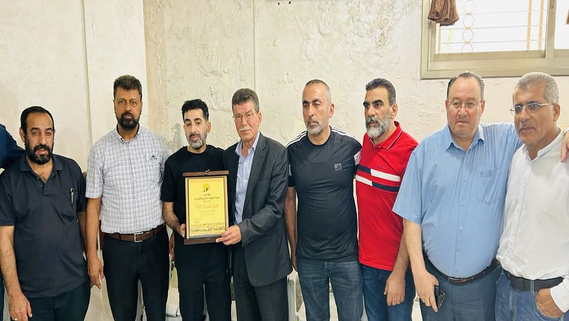 رئيس هيئة شؤون الأسرى والمحررين قدوره فارس ووفد من مؤسسات الأسرى وأقليم حركة فتح في محافظة رام الله والبيرة وأسرى محررون في زيارة وتهنئة الأسير محمد محمود حماد من مخيم قلنديا بعد أن أمضى 23 عاماً في سجون الاحتلال