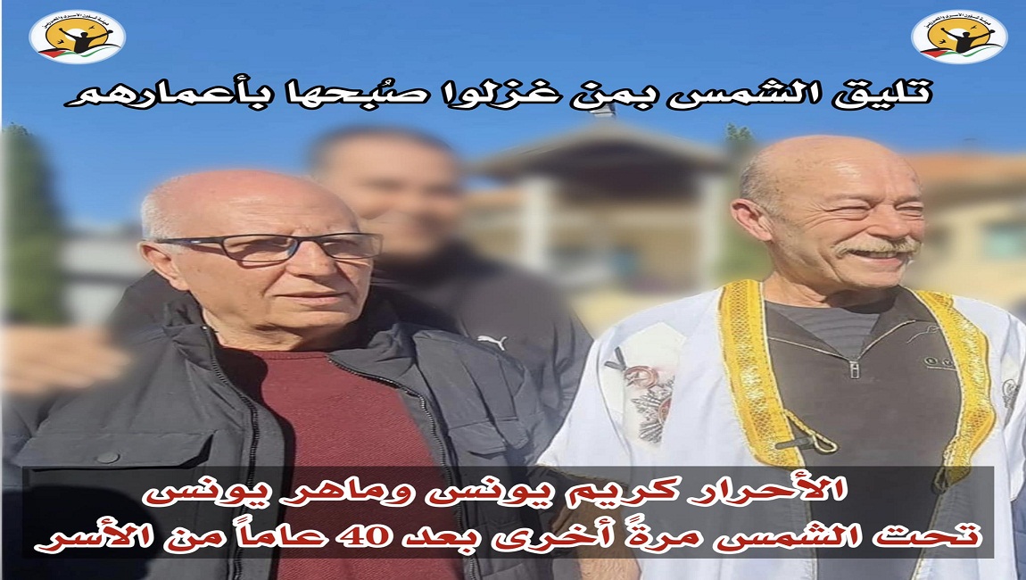 عانق عميد الاسرى الفلسطينيين المناضل ماهر يونس، الحرية، بعد اربعة عقود من الأسر في سجون الاحتلال الاسرائيلي.