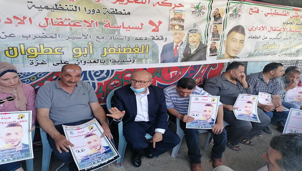 وبين أبو بكر خلال زيارته ووفد من الهيئة خيمة التضامن مع الأسير ابو عطوان وسط مدينة دورا قضاء الخليل، أن الأسير الغضنفر يحتجز فيما تسمى بعيادة الرملة في زنزانة قذرة وبحالة صحية بدأت بالتردي بعد هذه الأيام الطويلة من الاضراب والاعتداءات المتكررة عليه من قبل السجانين بالضرب والتنكيل والنقل المتواصل.