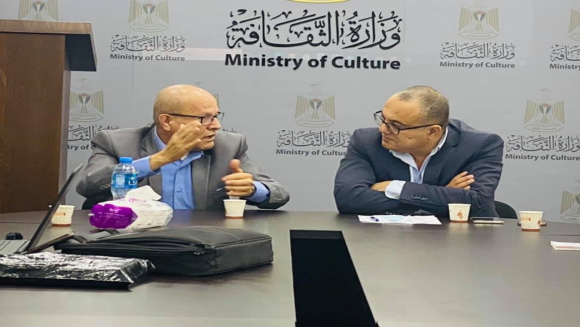 رئيس الهيئة اللواء قدري أبو بكر ووزير الثقافة د. عاطف أبو سيف خلال اعلان نتائج المسابقة الرمضانية ( أسرى مبدعون )