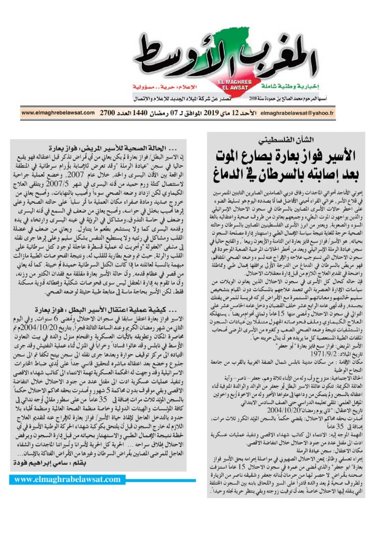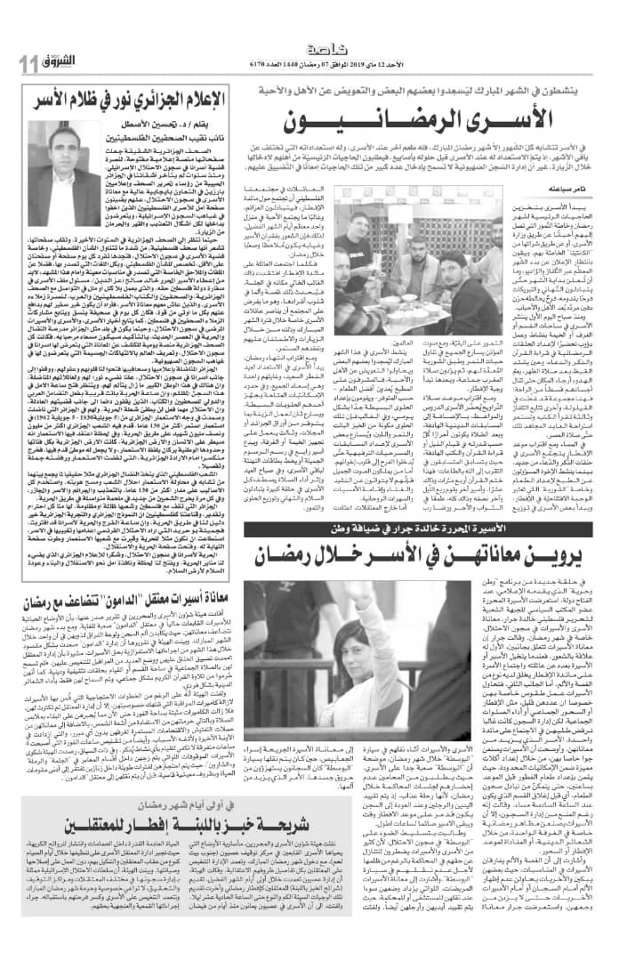 في 13 أيار 2019. نشر في الاسرى في الاعلام الجزائري