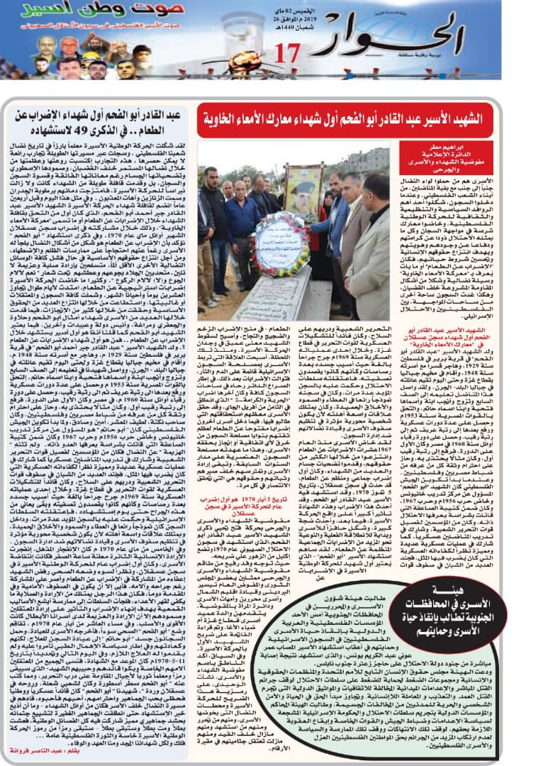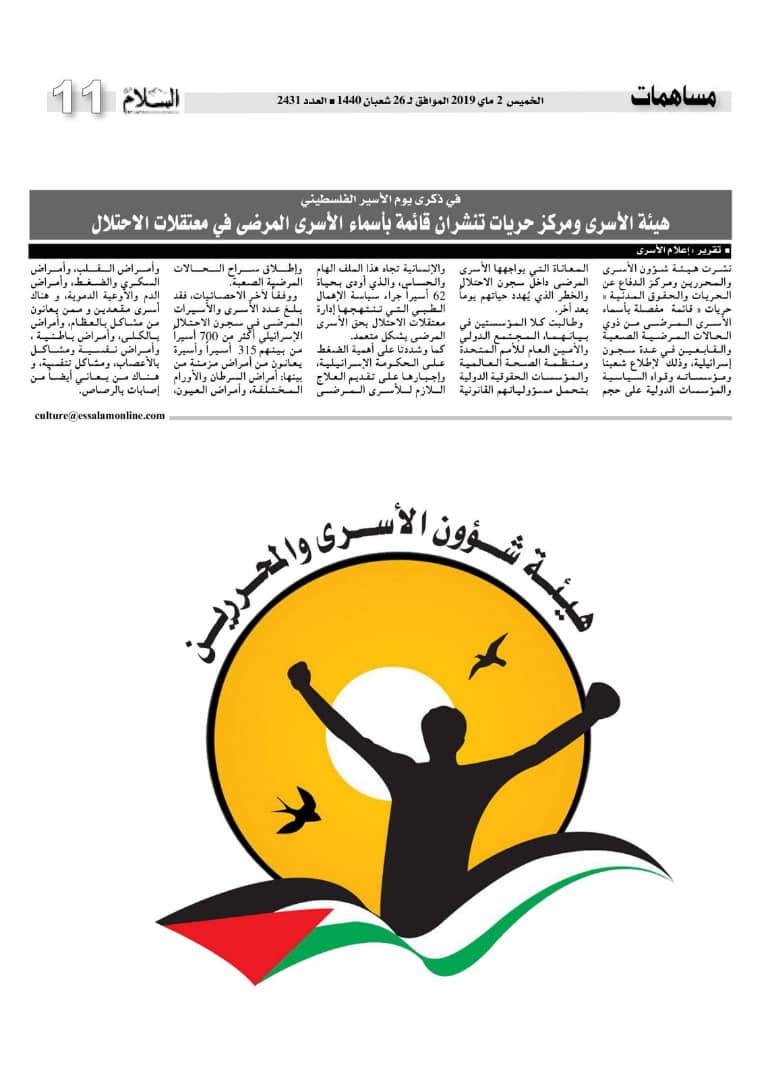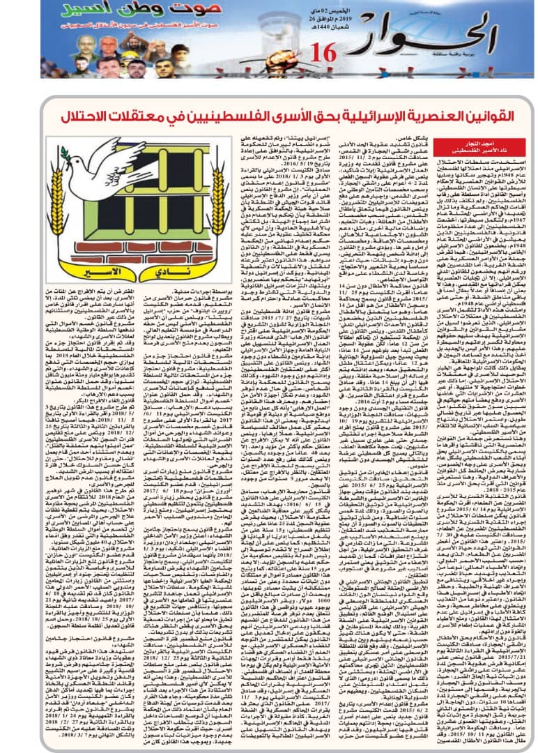 في 13 أيار 2019. نشر في الاسرى في الاعلام الجزائري