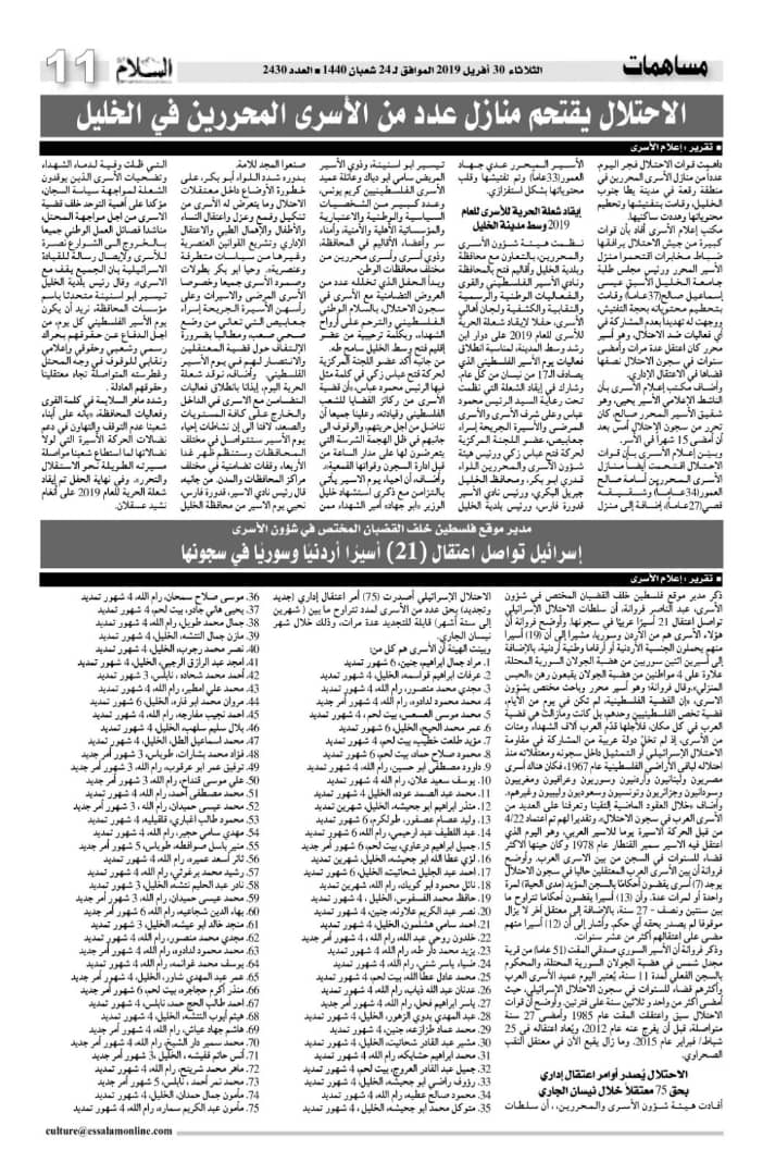 في 06 أيار 2019. نشر في الاسرى في الاعلام الجزائري
