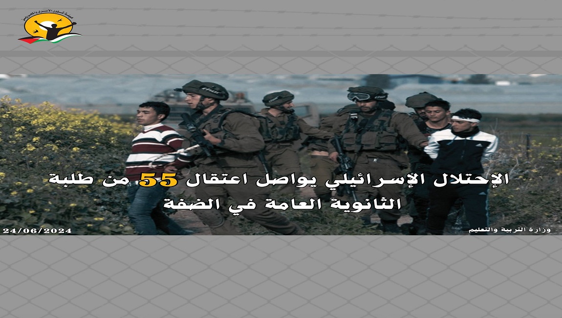 طباعة الاحتلال الاسرائيلي يواصل اعتقال 55 من طلبة الثانوية العامة في الضفة الغربية في 24 حزيران/يونيو 2024. نشر في الاخبار العاجلة