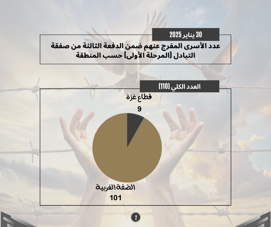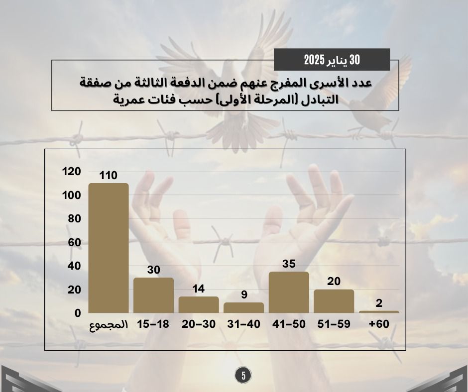 طباعة احصائيات حول الدفعة الثالثة من صفقة التبادل (المرحلة الأولى) 01 فبراير 2025 في 05 شباط/فبراير 2025. نشر في تقارير احصائية لتحميل الملف انقر هنا