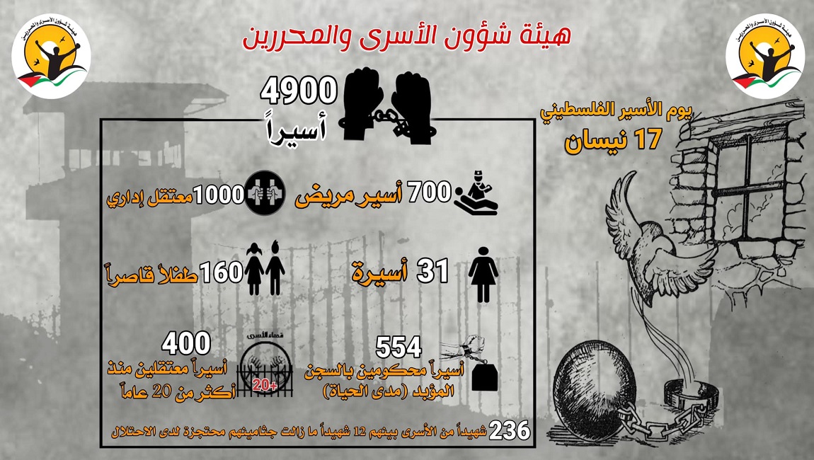 طباعة في يوم الأسير الفلسطيني للعام 2023: نحو 4900 أسير/ة في سجون الاحتلال في 15 نيسان/أبريل 2023. نشر في تقارير احصائية