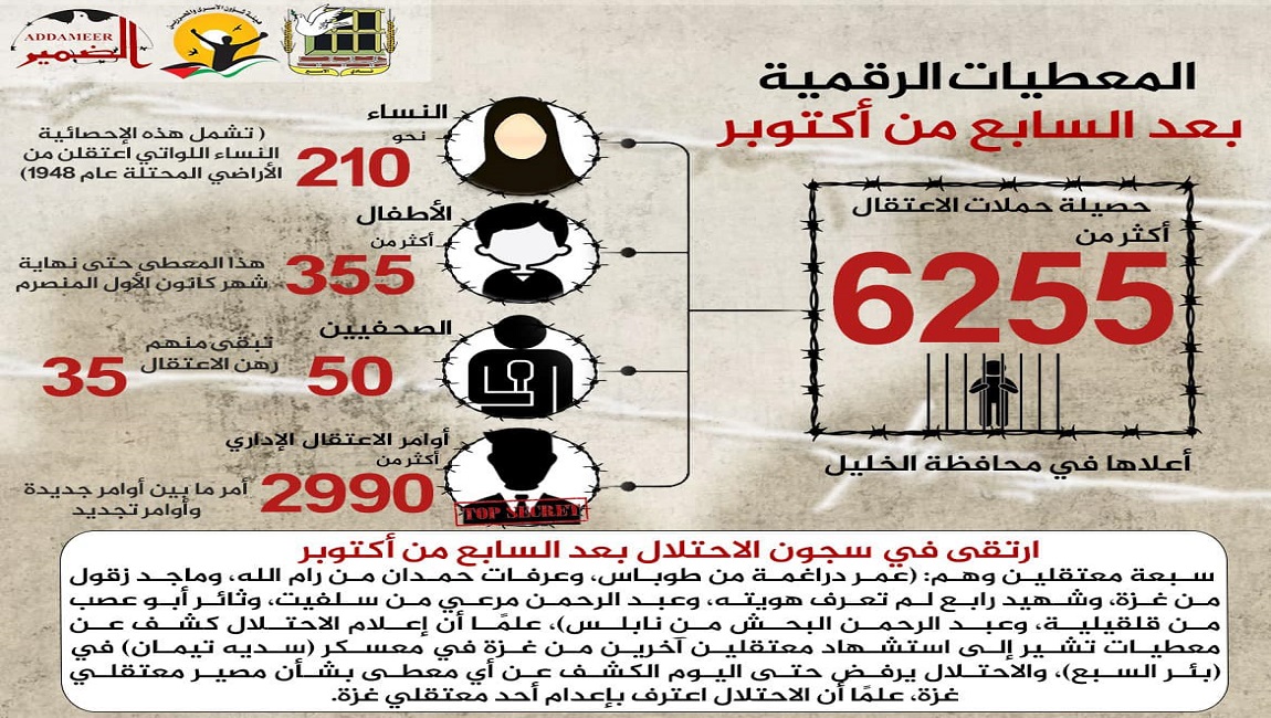 طباعة *ملخص عن معطيات حملات الاعتقال بعد السابع من أكتوبر حتى تاريخ اليوم 21/12/2023* في 21 كانون1/ديسمبر 2023. نشر في تقارير احصائية