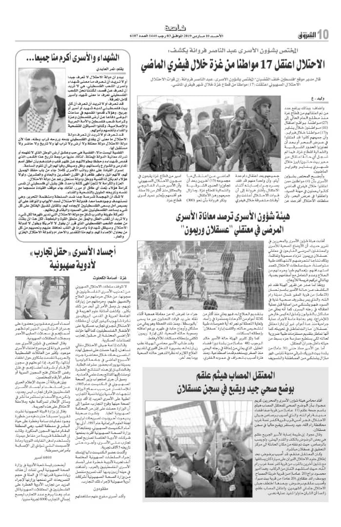 هيئة شؤون الأسرى تكشف عن جريمة منظمة بحق الأسير أمجد عوّاد