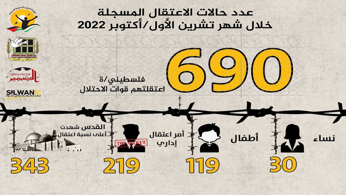 وكانت أعلى الأشهر التي تركزت فيها عمليات الاعتقال شهر نيسان/ أبريل وبلغت 1228، يليه شهري أيار / مايو، وأكتوبر/ تشرين الأول بـ690 حالة اعتقال.