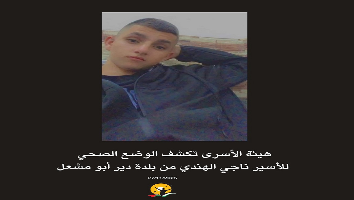 طباعة هيئة الأسرى تكشف الوضع الصحي للأسير ناجي الهندي من بلدة دير أبو مشعل- رام الله في 27 تشرين2/نوفمبر 2025. نشر في الاسرى الأطفال
