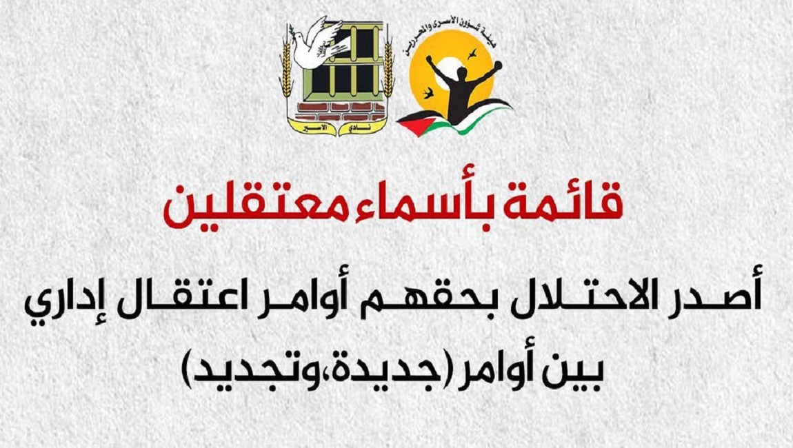 طباعة قائمة بأسماء معتقلين صدرت بحقهم أوامر اعتقال إداري بين (أوامر جديدة وأوامر تجديد) في 03 أيلول/سبتمبر 2025. نشر في الاعتقال الاداري