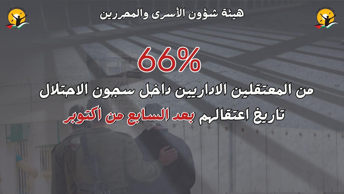 طباعة 66% من المعتقلين الاداريين داخل سجون الاحتلال تاريخ اعتقالهم بعد السابع من اكتوبر الماضي . في 14 تموز/يوليو 2024. نشر في الاعتقال الاداري
