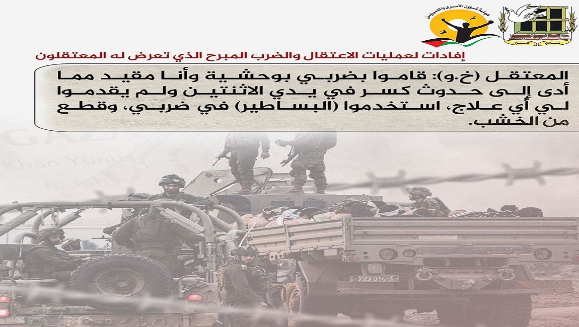 طباعة من تقرير صادر عن هيئة شؤون الأسرى ونادي الأسير إفادات لعمليات الاعتقال والضرب المبرح الذي تعرض له معتقلوا غزة في سجون ومعسكرات الاحتلال في 12 شباط/فبراير 2025. نشر في الاخبار العاجلة