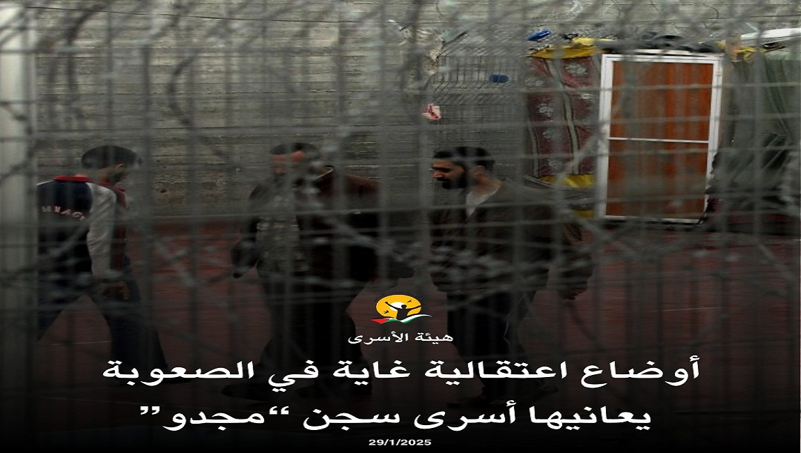 طباعة أوضاع اعتقالية غاية في الصعوبة يعانيها أسرى سجن مجدو في 29 كانون2/يناير 2025. نشر في الاخبار العاجلة