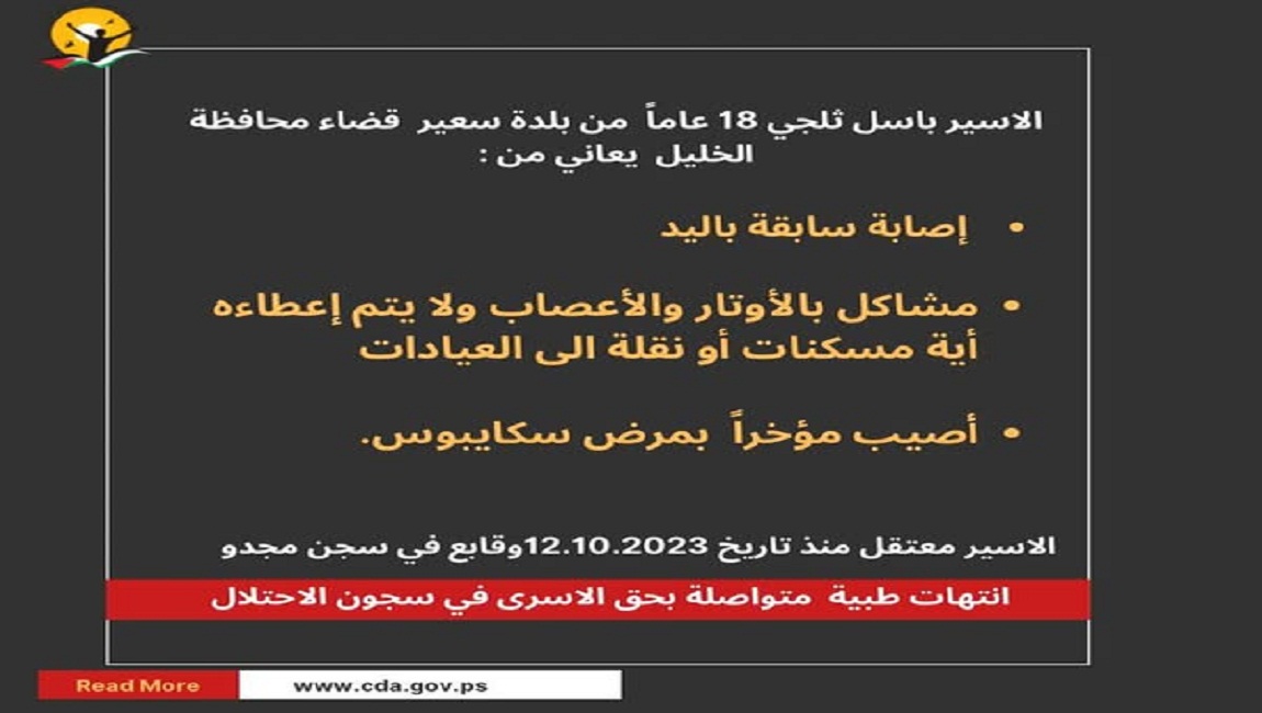 طباعة الاسير باسل ثلجي 18 عاماً من بلدة سعير قضاء محافظة الخليل في 13 كانون2/يناير 2025. نشر في الاخبار العاجلة