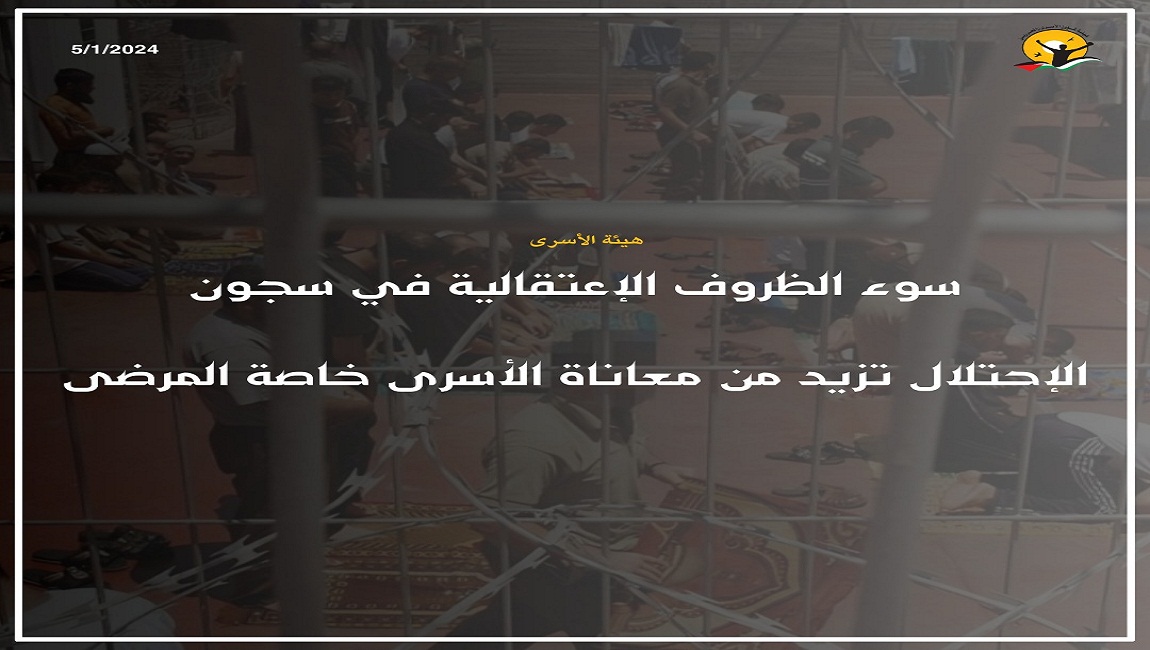طباعة سوء الظروف الإعتقالية في سجون الإحتلال تزيد من معاناة الأسرى خاصة المرضى في 05 كانون2/يناير 2025. نشر في الاخبار العاجلة