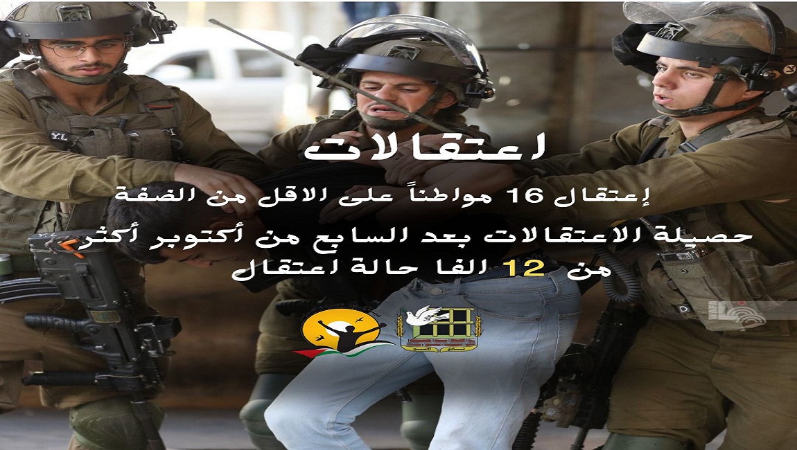 طباعة اعتقلت قوات الاحتلال منذ مساء أمس وحتّى صباح اليوم الاثنين (16) مواطناً على الأقل من الضّفة. في 09 كانون1/ديسمبر 2024. نشر في الاخبار العاجلة