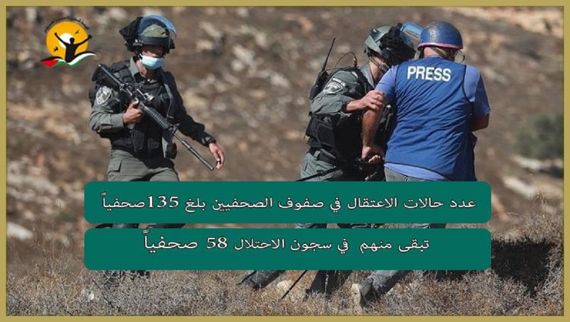 طباعة عدد حالات الاعتقال في صفوف الصحفيين بلغ 135صحفياً، تبقى منهم في سجون الاحتلال 58 صحفياً. في 19 تشرين2/نوفمبر 2024. نشر في الاخبار العاجلة