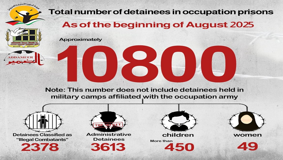 🔴 The number of Palestinian detainees in Israeli occupation prisons as for the beginning of August 2025
