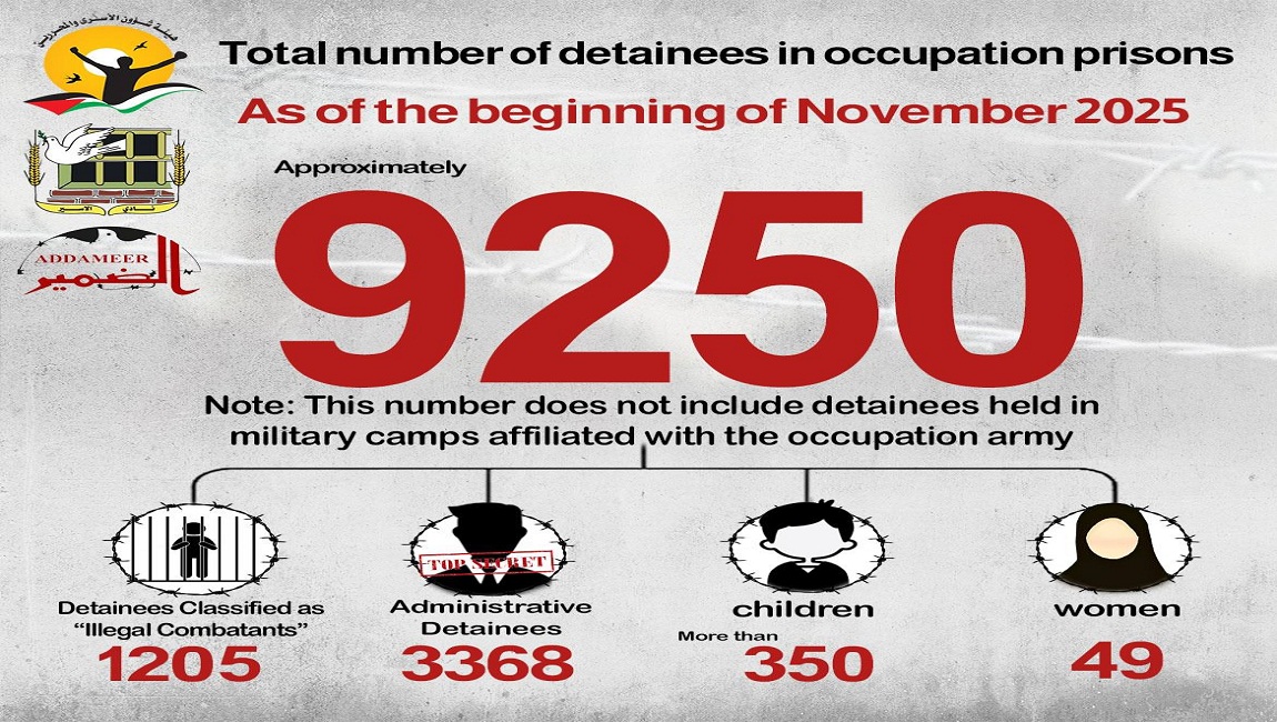 Print Update on the number of detainees in Israeli occupation prisons on 05 November 2025. Posted in Report and achivements