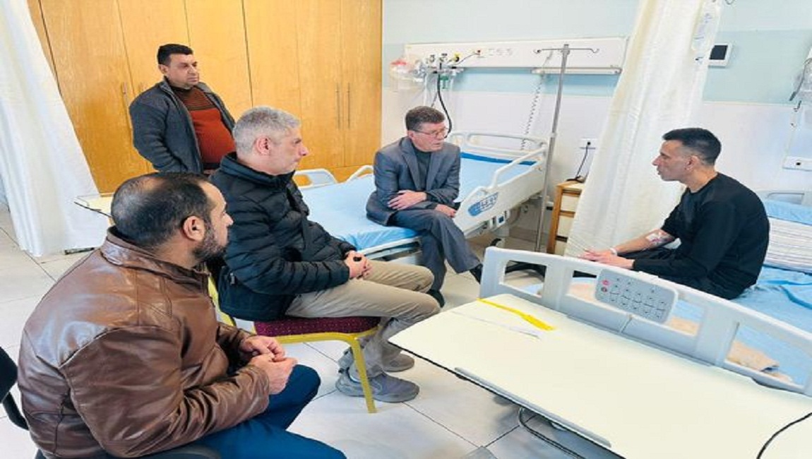 رئيس هيئة شؤون الأسرى والمحررين قدورة فارس ووفد من الهيئة في زيارة الأسير المحرر محمد شرقية من بلدة اليامون في محافظة جنين، والذي أفرج عنه في ساعات متأخرة من مساء أمس الاثنين على ما يسمى معبر الظاهرية بعد قضائه 23 عاماً، ونقل مباشرةً الى المستشفى الاستشاري في رام الله لاجراء فحوصات طبية، وسيغادر المستشفى اليوم