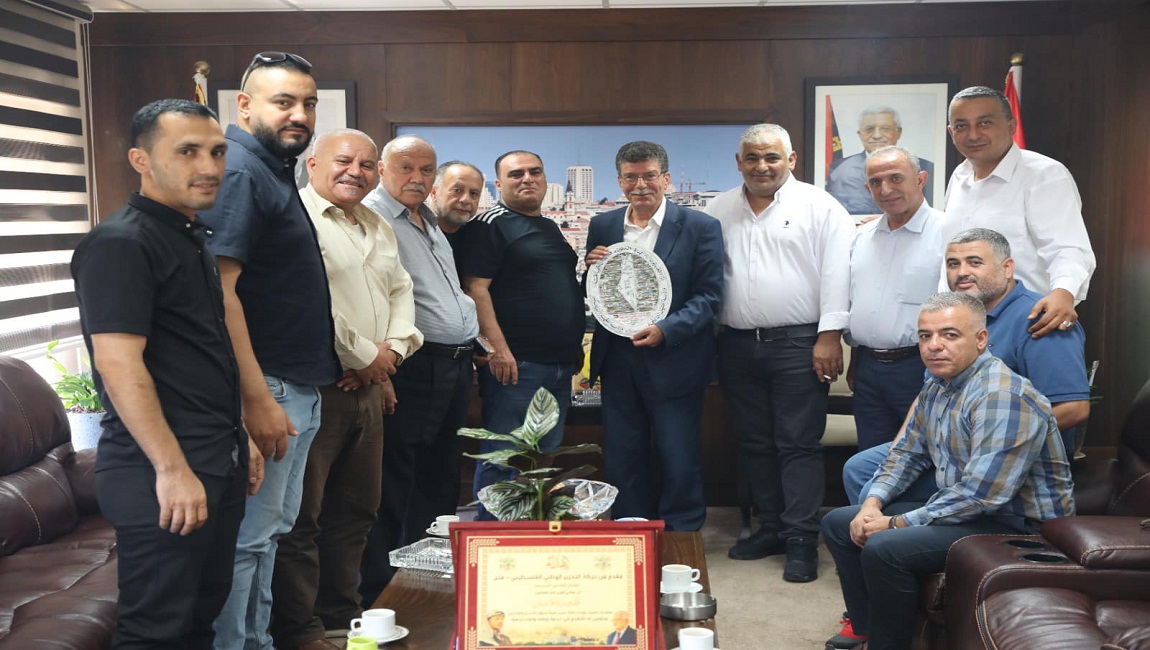 رئيس هيئة شؤون الاسرى والمحررين قدوره فارس وبحضور طاقم من موظفي الهيئة يستقبل في مكتبه ظهر اليوم وفد من الاسرى المحررين في محافظة قلقيلية وممثلي الحركة الاسيرة في المحافظة نائل غنام ولافي نصوره