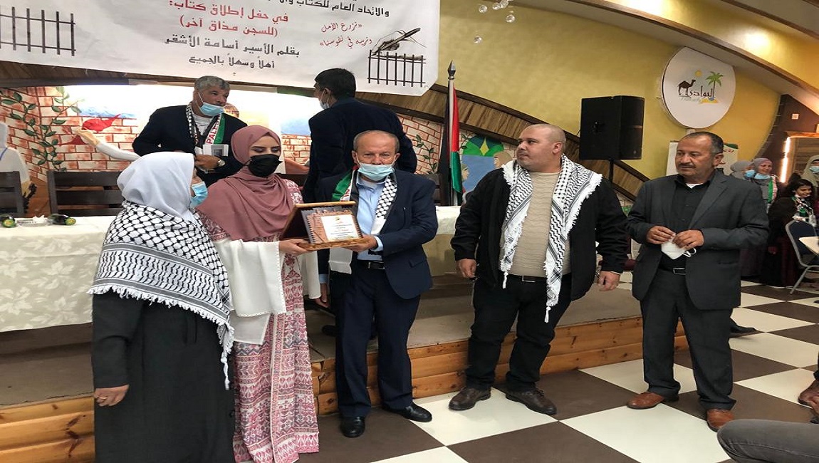 أما عن خطيبة الأسير أسامة الأشقر فقد وجهت الشكر والتقدير للقائمين على هذا الحفل وللمشاركين في إنجاح هذه المبادرة، مؤكدة على أن الأسرى رغم القمع قادرين أن يتخطوا الحواجز والقضبان بأقلامهم بما فيهم شريك عمرها الأسير أسامة الأشقر.