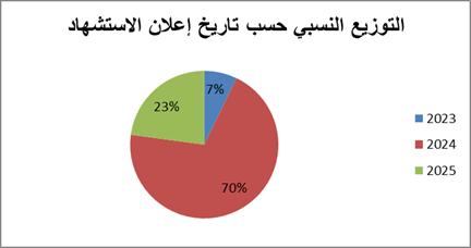 - التوزيع النسبي للشهداء حسب تاريخ إعلان استشهادهم (ما بعد حرب 7 أكتوبر):