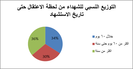 - التوزيع النسبي للشهداء حسب المدة ما بين الاعتقال والاستشهاد (ما بعد حرب 7 أكتوبر):