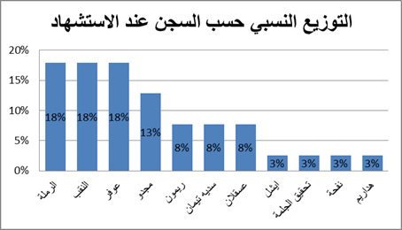 - التوزيع النسبي للشهداء حسب السجن عند الاستشهاد (ما بعد حرب 7 أكتوبر):