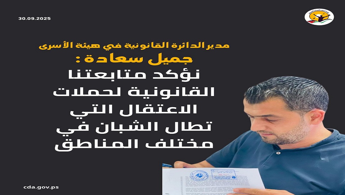 مدير الدائرة القانونية في الهيئة جميل سعادة لإذاعة صوت فلسطين : نؤكد متابعتنا القانونية لحملات الاعتقال التي تطال الشبان في مختلف المناطق