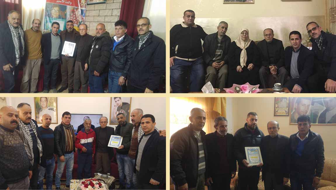 حيث تمت زيارة كل من الأسير المحرر كامل الخطيب من مخيم بلاطة بعد قضاءه 17 عاما في سجون الاحتلال، والاسير علاء الحلو من مخيم عسكر بعد اعتقال دام 15 عاما، وكذلك الاسير المحرر مروان ابو غنيم من كفر قليل بعد اعتقال دام 12 عاما والاسير ناصر جوابرة من مدينة بعد 17 عاما من الأسر.