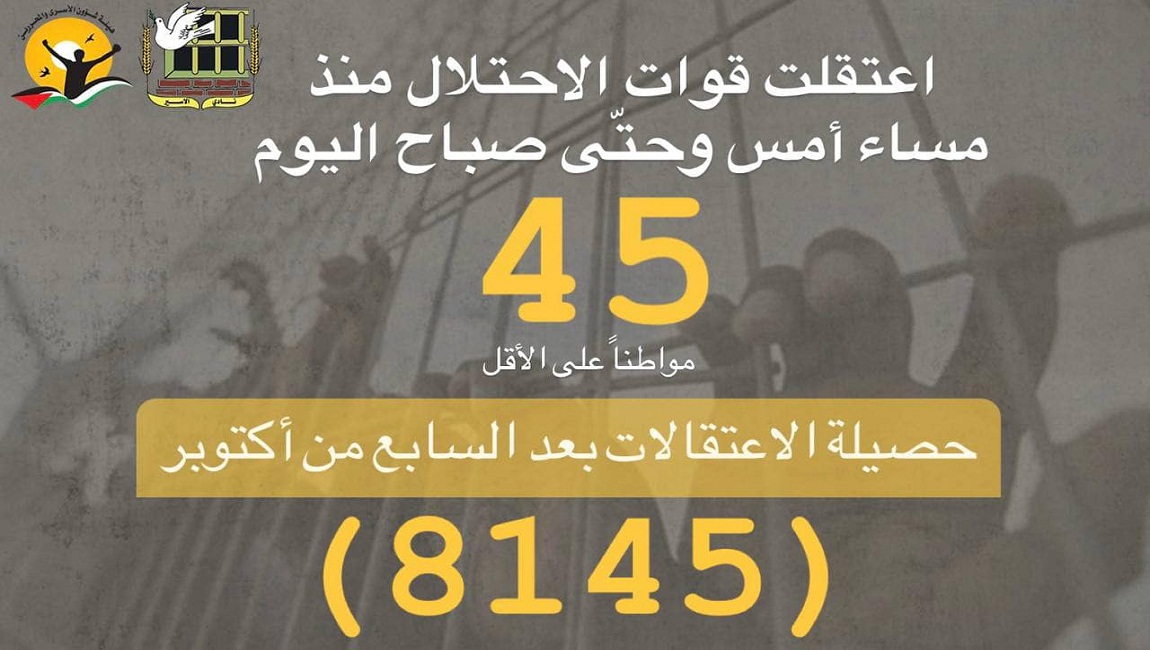 طباعة The Israeli authorities mounted a massive arrest campaign afflicting at least في 10 تشرين2/نوفمبر 2023. نشر في غير مصنف