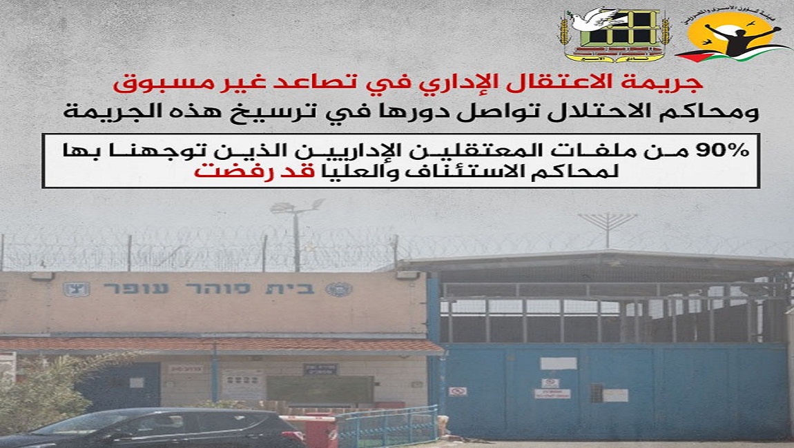 طباعة جريمة الاعتقال الإداري في تصاعد غير مسبوق، ومحاكم الاحتلال تواصل دورها في ترسيخ هذه الجريمة في 04 آب/أغسطس 2025. نشر في عارض الاخبار