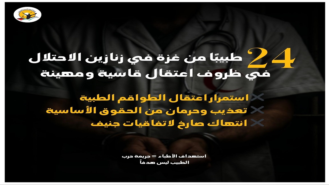 طباعة 24 طبيباً من غزة في زنازين الاحتلال في ظروف اعتقال قاسية ومهينة في 06 آب/أغسطس 2025. نشر في عارض الاخبار