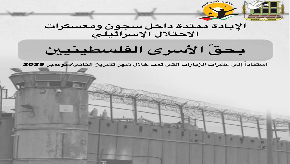 طباعة إحاطة صادرة عن هيئة شؤون الأسرى والمحررين ونادي الأسير الفلسطيني عن الإبادة الممتدة داخل سجون ومعسكرات الاحتلال الإسرائيلي بحقّ الأسرى الفلسطينيين في 27 تشرين2/نوفمبر 2025. نشر في عارض الاخبار