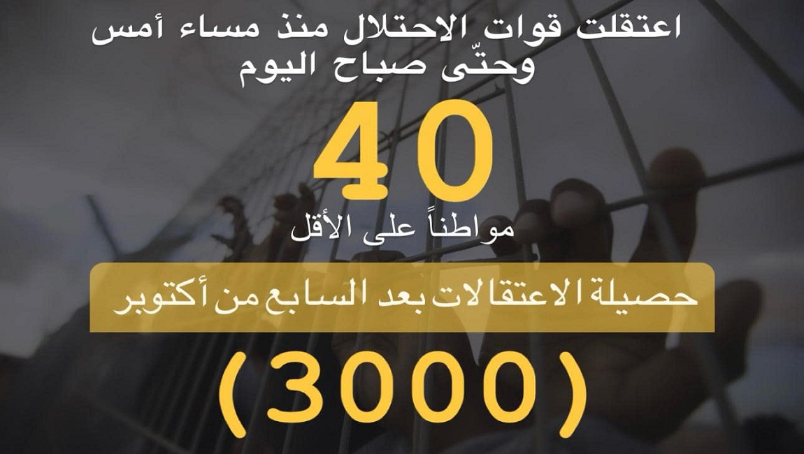 طباعة *ملخص حملة الاعتقالات التي نفذها الاحتلال لليوم 20/11/2023* في 20 تشرين2/نوفمبر 2023. نشر في الاخبار العاجلة
