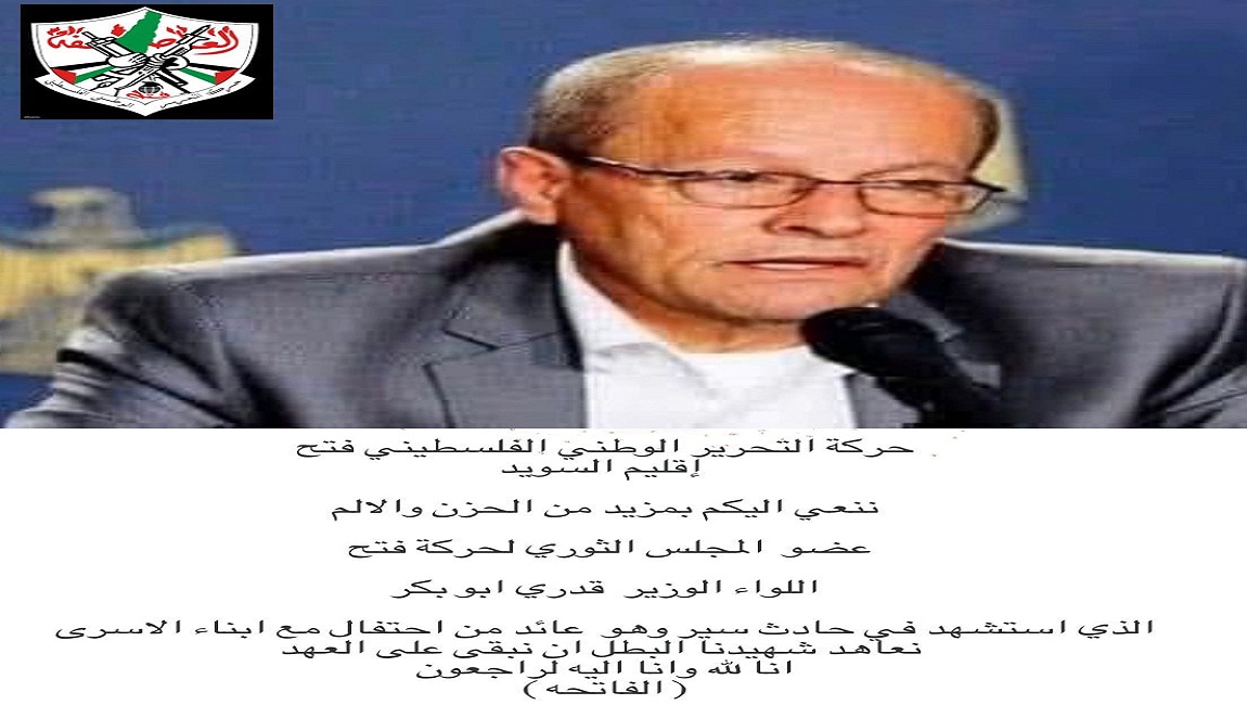 طباعة من قطاع غزة .. من خيمة الوفاء ..خيمه عزاء اللواء شهيد الواجب الأخ المناضل الوزير قدرى أبو بكر في 03 تموز/يوليو 2023. نشر في الاخبار العاجلة