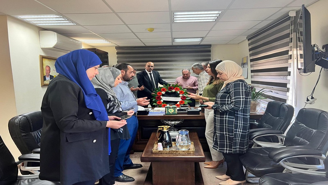 طباعة وكيل هيئة شؤون الأسرى والمحررين عبد القادر الخطيب والوكلاء المساعدين والمدراء العاميين وموظفو من الهيئة يضعون صباح اليوم الاثنين اكليلاً من الزهور على كرسي مكتب رئيس الهيئة الشهيد اللواء قدري أبو بكر، راجيين من الله أن يتغمده بواسع رحمته وان يلهمنا ويلهم في 03 تموز/يوليو 2023. نشر في الاخبار العاجلة