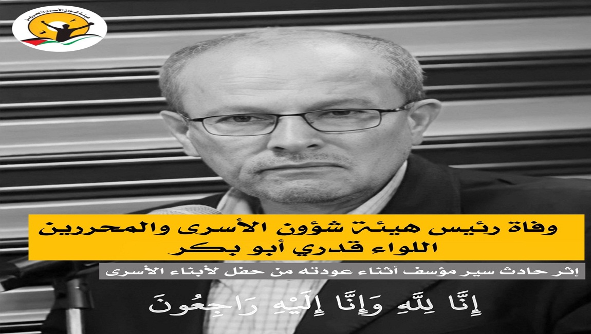 طباعة هيئة الأسرى تعلن وفاة رئيسها اللواء قدري ابو بكر اثر حادث سير مؤسف في 01 تموز/يوليو 2023. نشر في الاخبار العاجلة