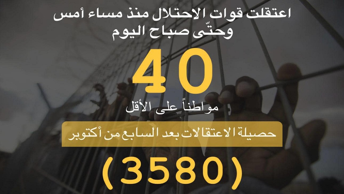 طباعة *ملخص حملة الاعتقالات التي نفذها الاحتلال لليوم 6/12/2023* في 06 كانون1/ديسمبر 2023. نشر في الاخبار العاجلة