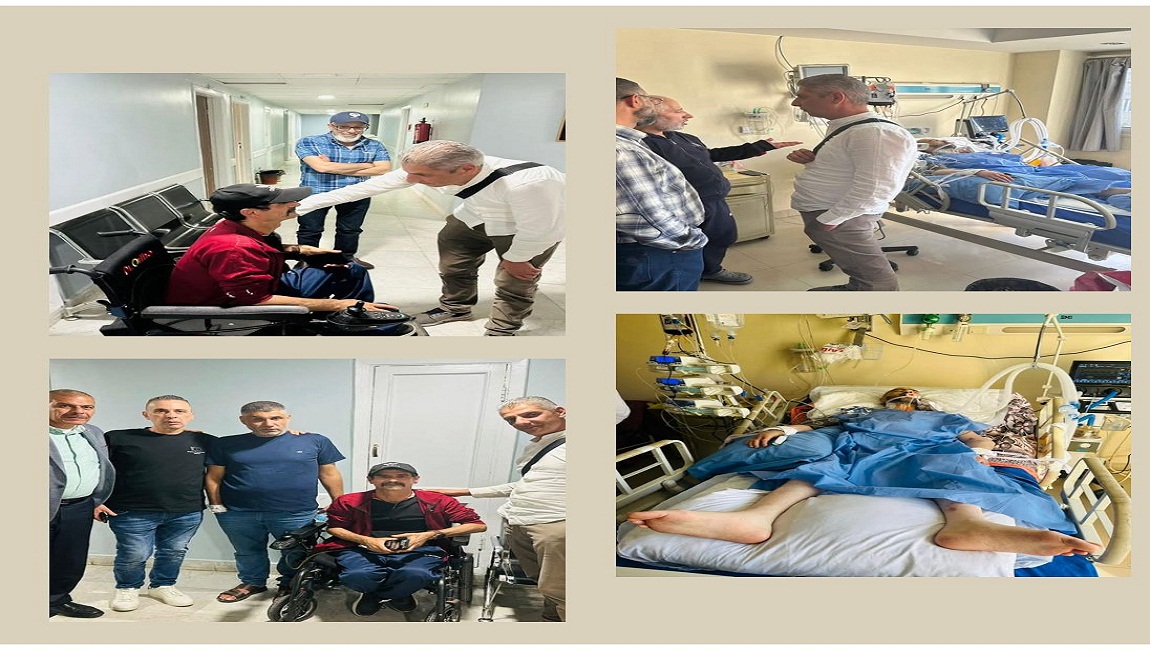 رئيس هيئة شؤون الأسرى والمحررين رائد أبو الحمص ووفد من الهيئة وأسرى محررين، خلال زيارتهم مساء اليوم الثلاثاء للأسرى المرضى الذين يتواجدون في مستشفى فلسطين في العاصمة المصرية القاهرة، وهم: معتصم رداد الذي يمر بوضع صحي صعب ومعقد، ومنصور موقدة واياد حريبات وفلاح الحاج، وأكد رئيس الهيئة أن هناك متابعة لأوضاعهم، وسيتم تكثيف الاتصالات في سبيل تقديم العلاجات والادوية لهم، وتوفير كل ما يحتاجونه للتغلب على حالاتهم المرضية، علماً أن هؤلاء الأسرى من ضحايا الجرائم الطبية داخل السجون والمعتقلات، واعتقلوا أصحاء وبفعل عدم توفر الفحوصات الطبية الدورية والرعاية الصحية والمتابعات العلاجية، وجدوا انفسهم في وضع خطير جداً