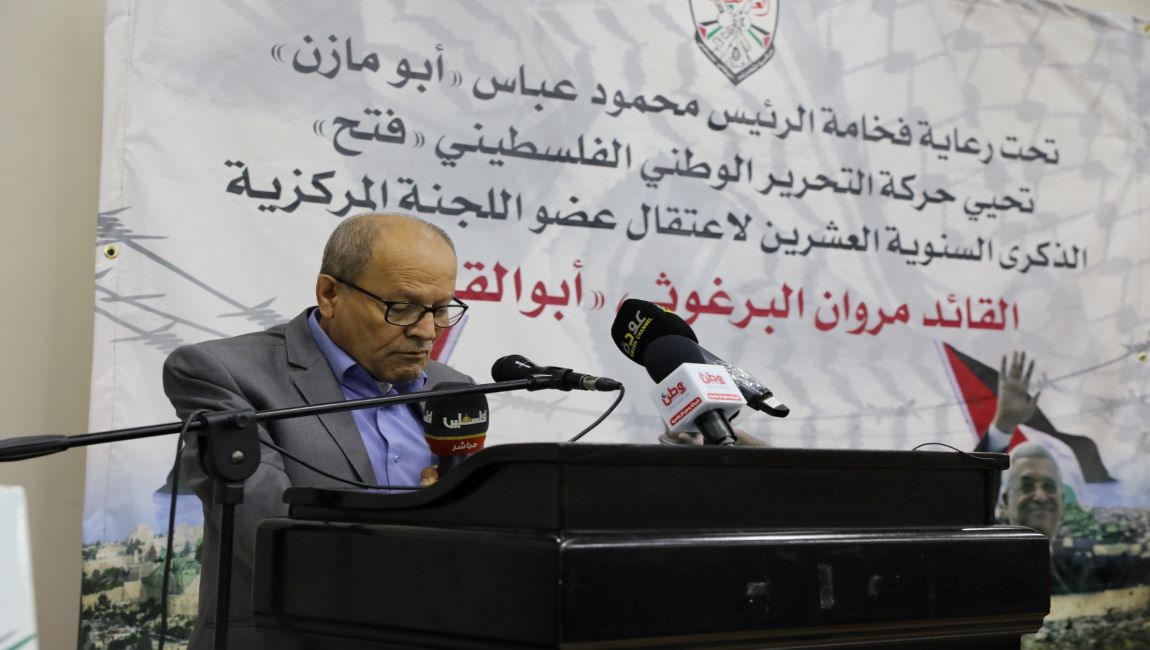 طباعة رئيس هيئة شؤون الأسرى والمحررين اللواء قدري أبو بكر خلال إحياء الذكرى العشرين لاعتقال عضو اللجنة المركزية لحركة فتح القائد مروان البرغوثي في 25 أيار 2022. نشر في الاخبار العاجلة